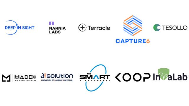 참여 스타트업 명단은 딥인사이트(AI기반 3D센싱 카메라 모듈화 솔루션), 나니아랩스(3D 엔지니어링 데이터 및 AI솔루션), 테라클(PET 해중합기반 재생 TPA 및 EG 소재생산), 캡처6(탄소직접포집기술), 테솔로(다관절 로봇 그리퍼), 매이드(실리콘카바이드 소재 3D 프린트), 쓰리아이솔루션(산업용 중성자 성분 분석기), 스마트 타이어 컴퍼니(형상기억합금 기반 비공압 타이어), 쿱 테크놀로지스(자율주행차량, 로봇 및 자동화 위험 보험 기술), 인베랩(생태계교란식물 방제 통합 솔루션) 이다.