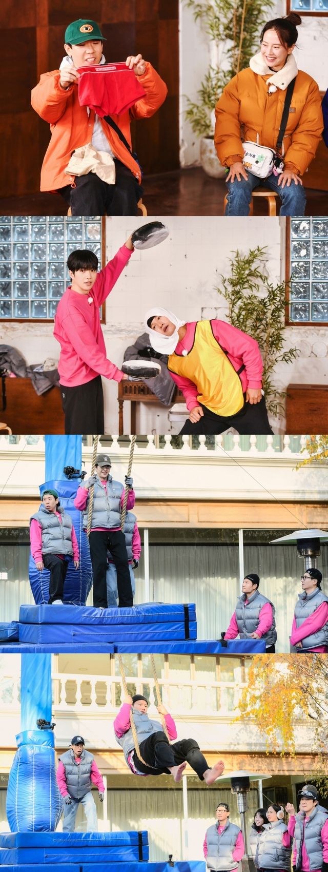 한편, 제작진은 멤버들의 특급 미션을 위해 김이 폴폴 나는 야외 풀장과 밧줄 그네를 준비했다. 해당 미션은 그네를 이용해 물풀 사이에 있는 디딤대에 착지하는 것으로, 겁 없는 김종국마저 막상 그네를 타자 생각보다 아찔한 높이와 속도감에 “그만 밀어!”라고 외칠 정도였다. 연말의 대미를 장식할 미션인 만큼 순금 배지 상품도 걸려 있어 더욱 기대를 모은다.