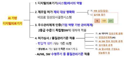 디지털의료제품법은 인공지능의료기기에 별도 분류 코드를 부여하고, 지속적인 업데이트가 이루어지는 특성상 별도로 정한 범위 내에서 업데이트는 변경허가가 아니라 사전에 제출한 변경관리 계획서로 대체하는 등 기존 의료기기와 다른 관리 체계를 갖췄다.