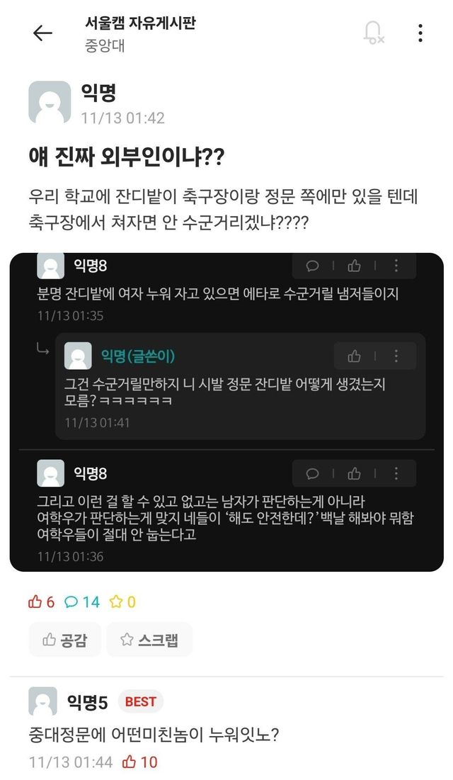 정보) 중앙대학교 잔디밭은 출입금지라 밟을 생각도 안한다