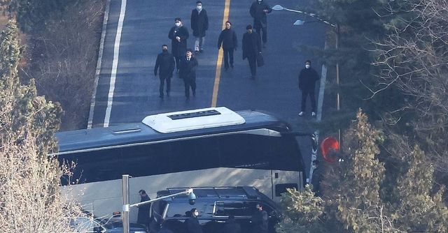 고위공직자범죄수사처가 윤석열 대통령의 체포영장 집행에 나선 지난 3일 서울 용산구 한남동 대통령 관저 경내에서 관계자들이 내려오고 있다 / 뉴스1