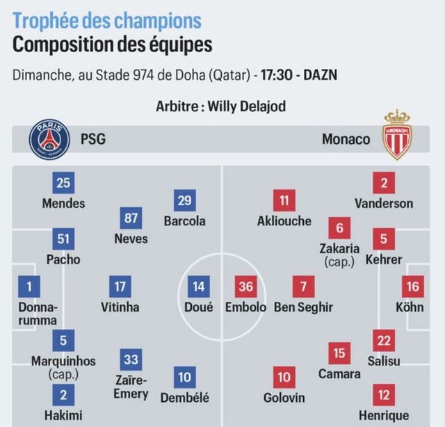 PSG는 6일 오전 1시 30분 카타르 도하의 스타디움 974에서 AS 모나코와 트로페 데 샹피옹 결승전을 치른다.