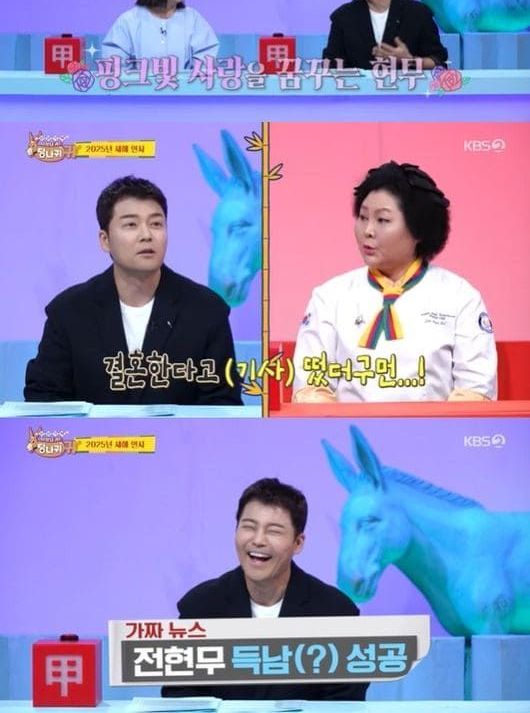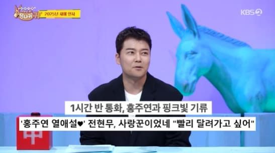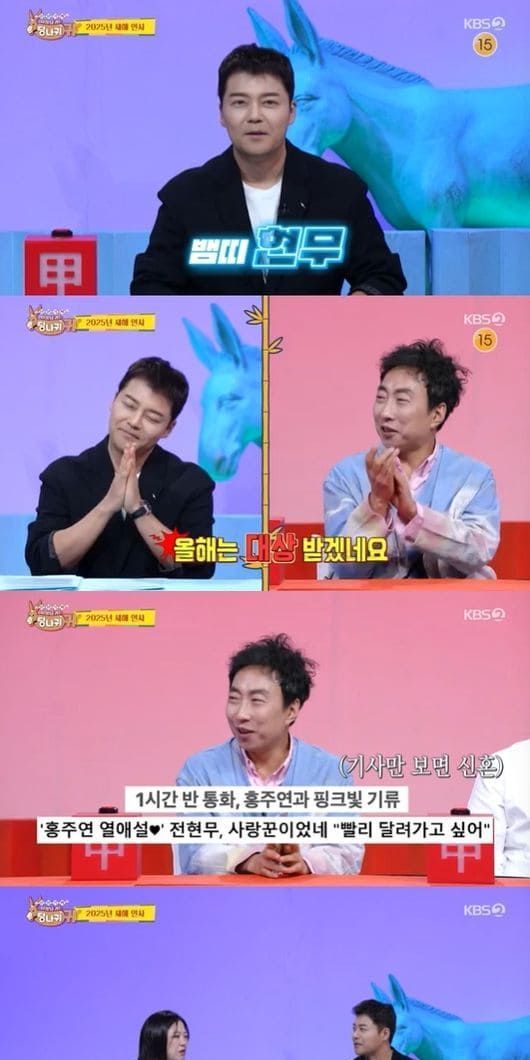 이에 전현무는 "요즘 '(사당귀) 기사만 보면 신혼이다. 실제 생활에서도 조금 핑크빛 사랑이 되길 바란다"며 20살 연하이자 KBS 아나운서 후배 홍주연을 거론했다.