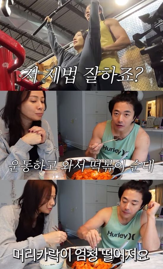 하지만 운동을 끝낸 두 사람의 점심 메뉴는 순대와 떡볶이였다. 권상우는 "이상한 애들"이라며 셀프 디스했다. 손태영이 "저녁을 많이 안 먹으면 되잖아"라고 하자, 권상우는 "약속 있지 않냐"며 티격태격 했다.