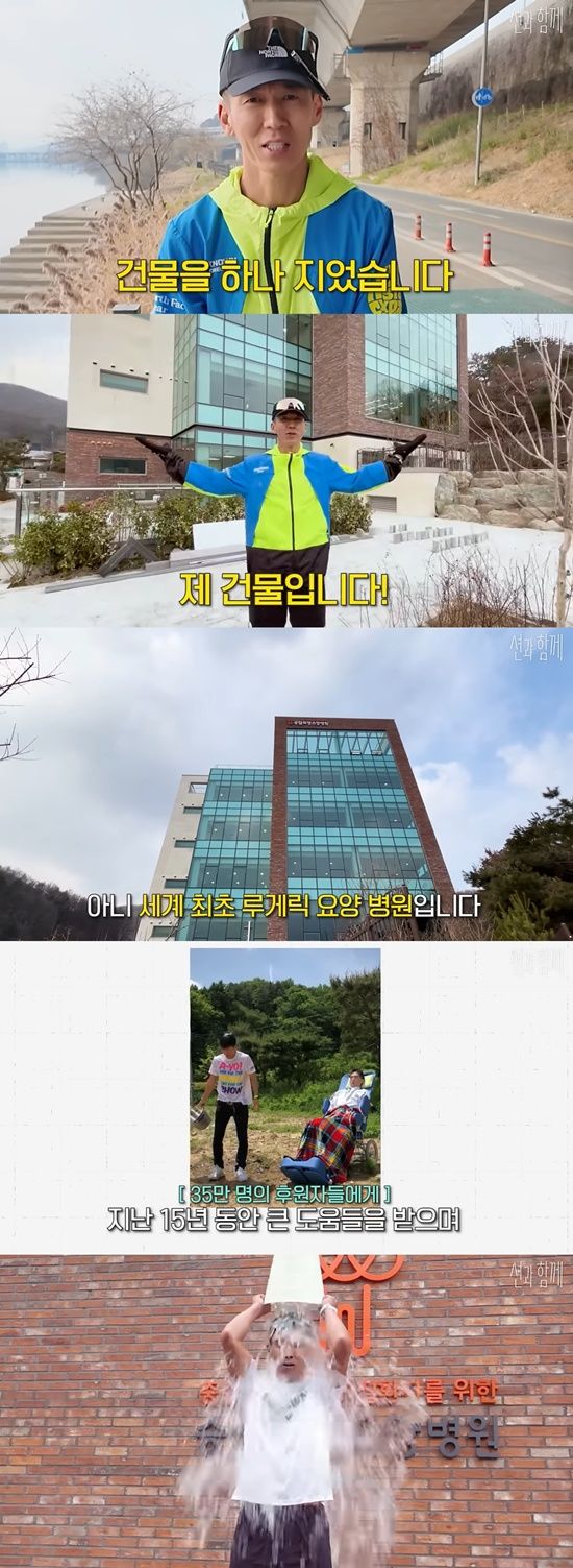 완주에 성공한 션은 "제 건물이다"라며 한 건물 앞에 섰다. 그는 "제 친구 박승일 대표와 저의 꿈이던 세계 최초 루게릭 요양 병원"이라고 해당 건물을 소개하며 "아주 특별한 병원"이라고 뿌듯하게 이야기했다.
