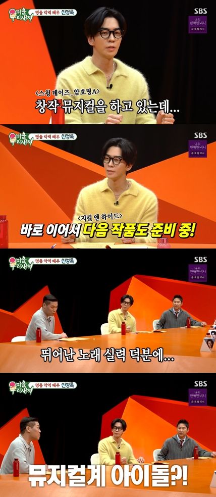 이어 "조만간 또 들어가지 않냐"라고 물었고, 신성록은 "제가 새롭게 하는 창작 뮤지컬 '스윙 데이즈_암호명A'가 오픈했다. 그 다음 작품으로는 '지킬 앤 하이드'도 준비 중이다"라며 바쁜 일상을 전했다.