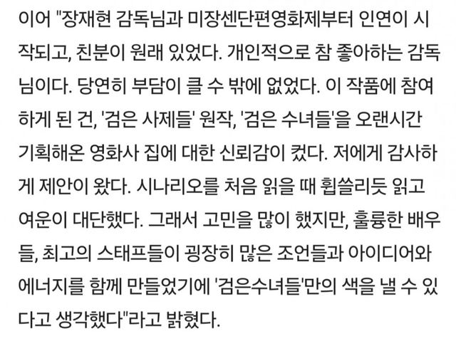 그리고 며칠전에 한 제작발표회에서 장재현 감독을 언급했는데