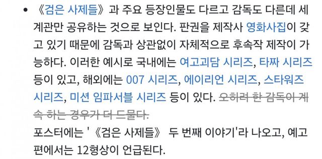 같은 제작사에, 후속작이라고 대놓고 명시했고, 심지어 검은사제들 배우 특출도 하는데(목격담 많이 떴음) 왜 후속작 아니라는지 어리둥절