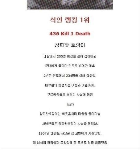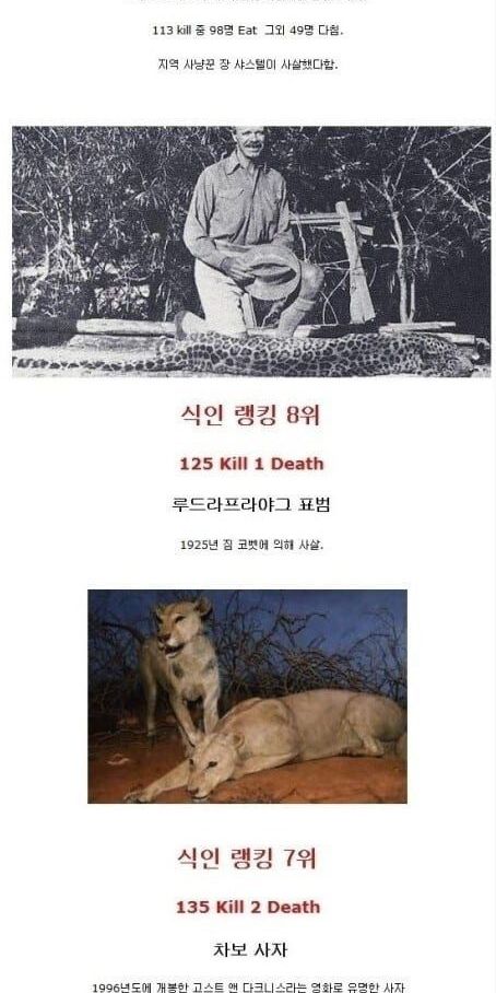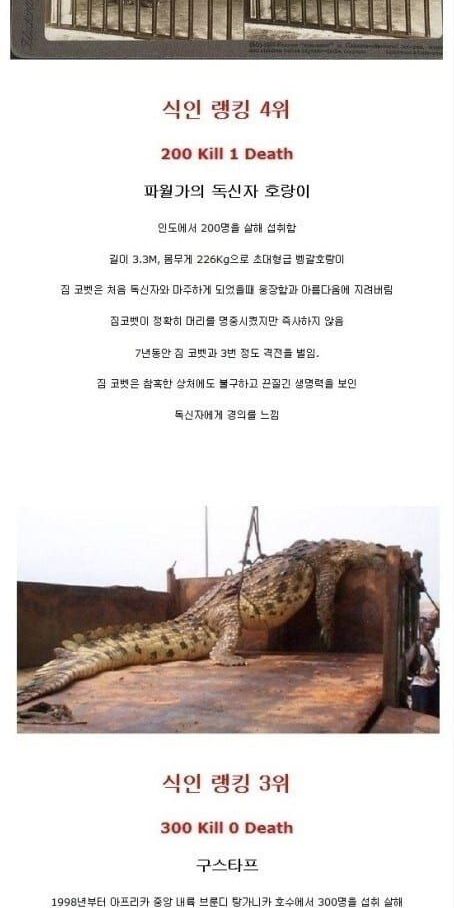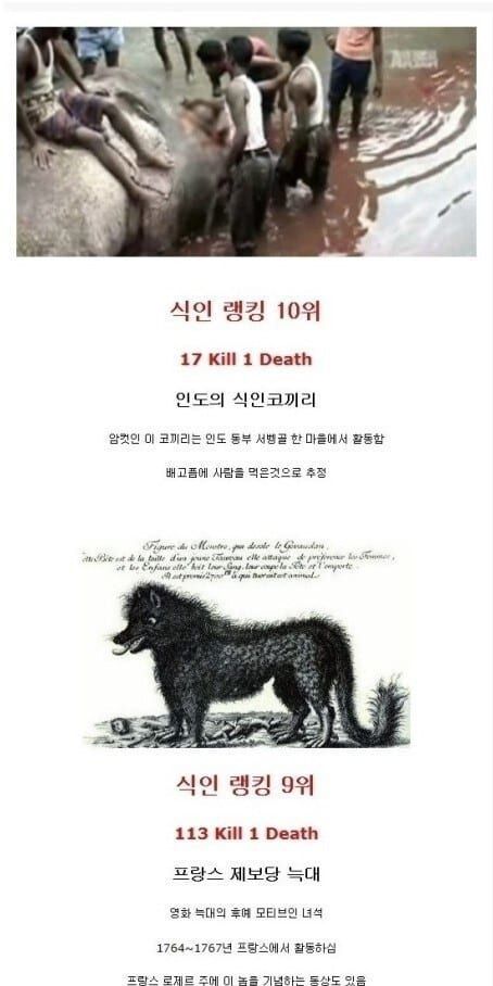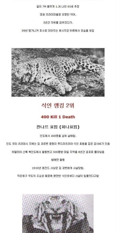 역대 식인동물 랭킹 TOP 10