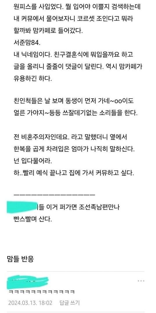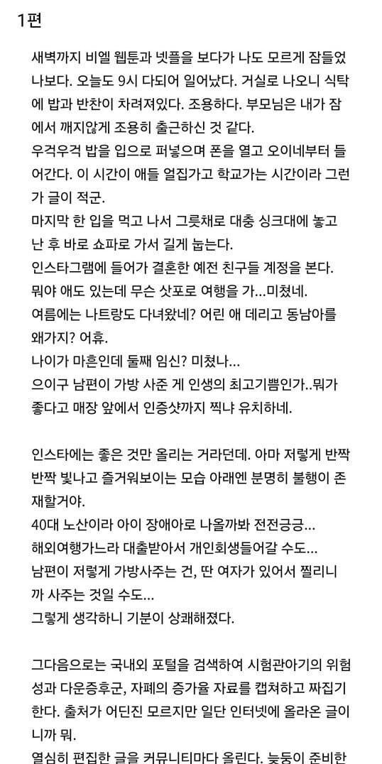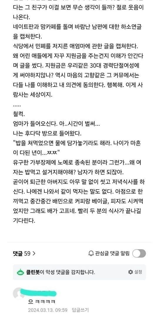 맘카페 어머님이 쓴 비혼 도태녀의 하루.fiction