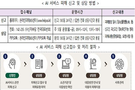 신고창구는 ▲AI 기술·서비스 이용 범죄 등으로 이용자가 피해를 입었을 경우 신고하는 기능(‘AI 피해 신고’), ▲AI 서비스 이용 불편·불만 등을 제보할 수 있는 기능(‘AI 불편 제보’)으로 구성하여 운영된다.