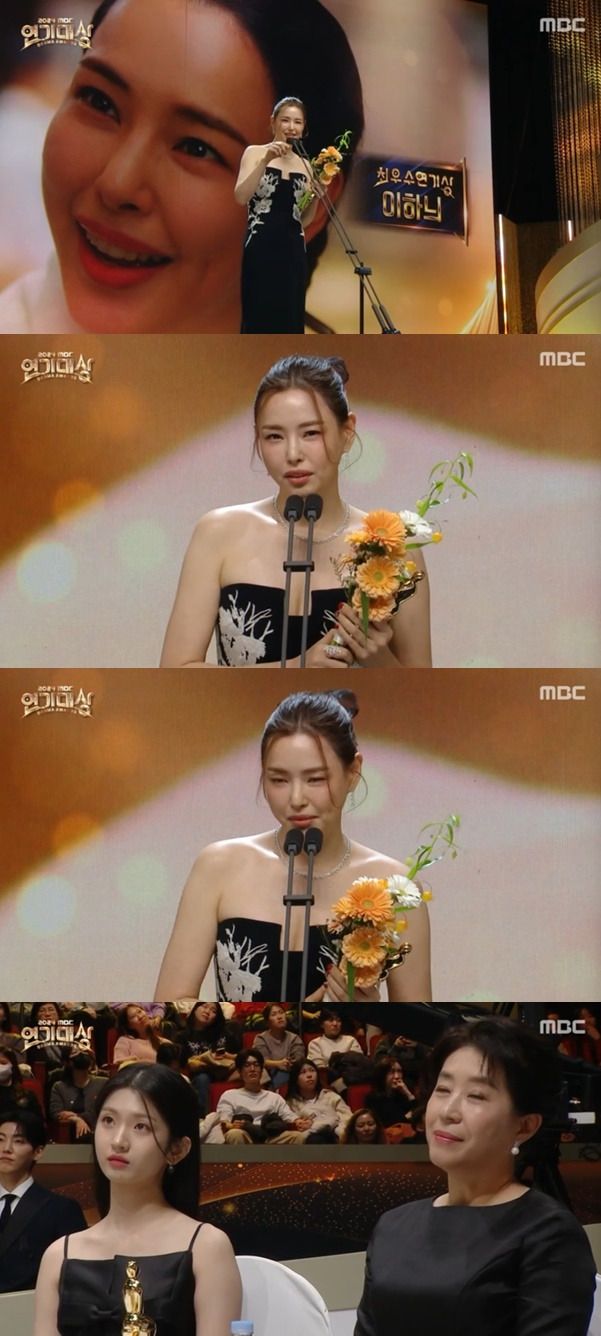 MBC 드라마 '밤에 피는 꽃'에서 열연한 이하늬는 지난해 12월 30일 서울 마포구 상암 MBC공개홀에서 진행하고 5일 방송한 2024 MBC 연기대상에서 여자 최우수연기상 미니시리즈 부문을 수상했다.