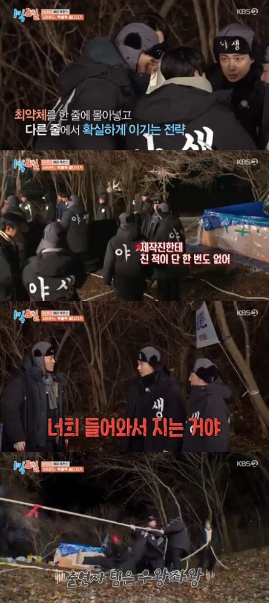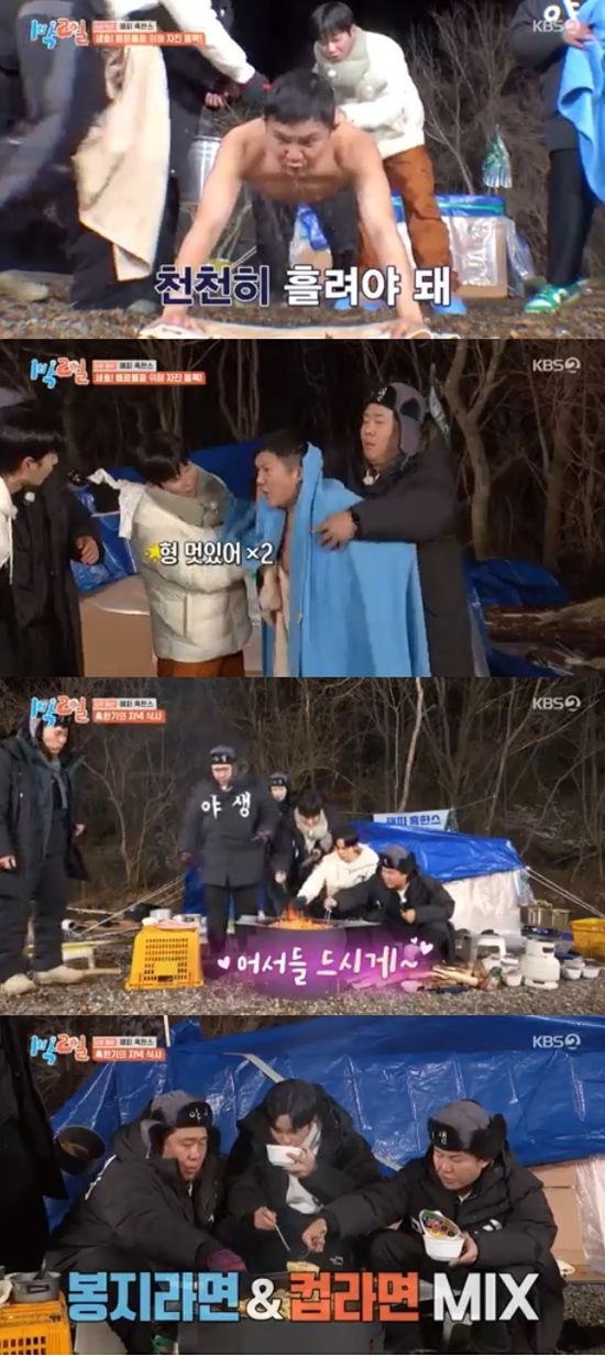 이날 멤버들은 혹한기 여행으로 베이스캠프를 직접 만들어놓은 뒤 식재료 획득 단체전 대결을 준비했다.
