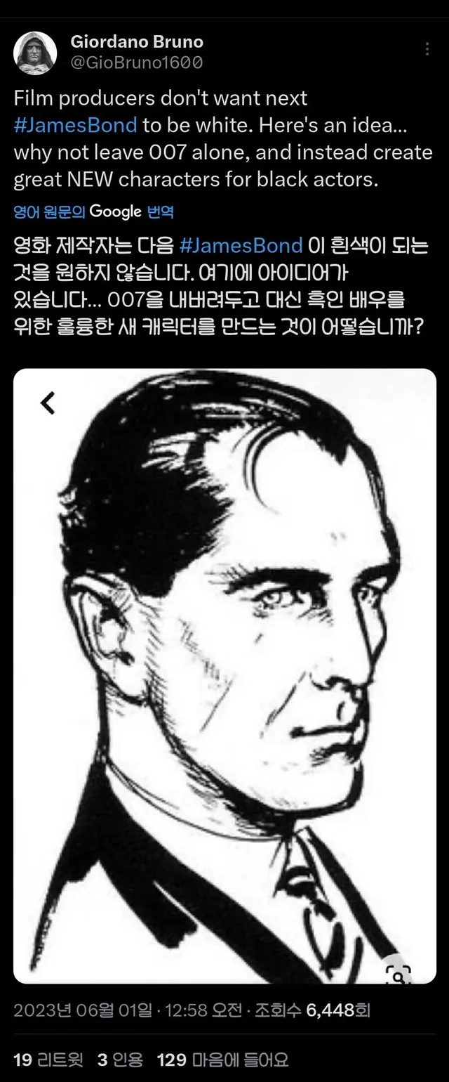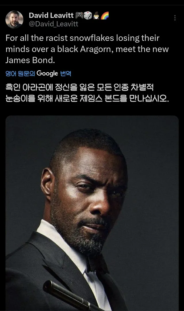 가상 캐릭터인 제임스 본드를 흑인이 연기한다고 해서 화를 내진 않거든?