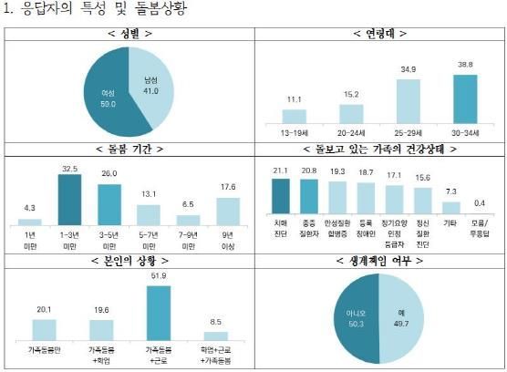 특히 응답자의 51.9%는 가족돌봄과 근로를 병행하고 있었으며, 19.6%는 가족돌봄과 학업을, 8.5%는 가족돌봄, 학업, 근로까지 병행했다. 이런 상황에서 전체 49.7%는 가족의 생계를 책임지고 있는 것으로 조사됐다.