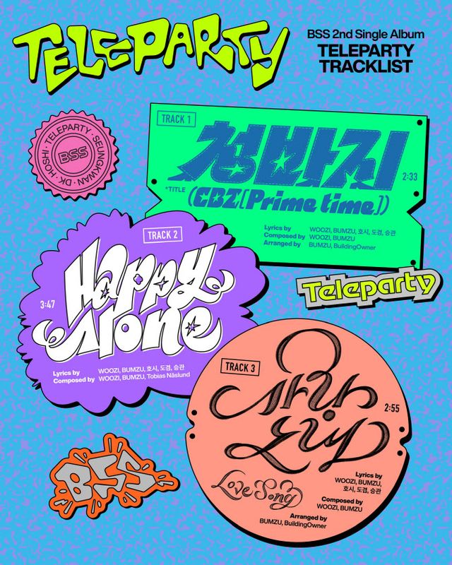 플레디스엔터테인먼트는 6일 0시 세븐틴 공식 사회관계망서비스(SNS)에 부석순 싱글 2집 ‘텔레파티’(TELEPARTY) 트랙리스트를 게재했다. 이에 따르면 신보에는 타이틀곡 ‘청바지’를 비롯해 수록곡 ‘해피 얼론’(Happy Alone)과 ‘사랑 노래’ 등 총 3곡이 실린다.