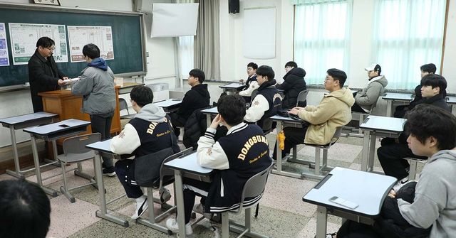 2025학년도 대학수학능력시험(수능) 성적표가 배부된 6일 서울 종로구 동성고등학교에서 학생들이 성적표를 받고 있다. / 뉴스1