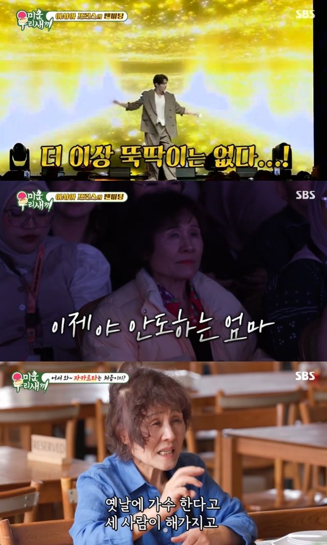 그러면서 "네가 너무 힘든 과정이 있었기에 (팬미팅이) 눈물 나더라고. 대견했다"며 어려운 시절을 극복한 아들에 대한 뿌듯한 마음을 감추지 못했다.
