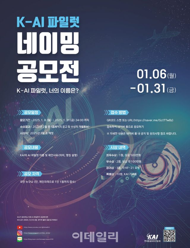 이번 공모전은 KAI가 개발 중인 AI 파일럿의 가치를 제고하고 미래전장의 게임 체인저로서 대표할 수 있는 고유의 이름을 만들고자 하는 취지에서 마련됐다.