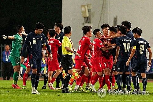 하지만 태국은 경기가 재개되자 자신들의 공격으로 이어갔다. 스로인 직후 이어진 공격에서 베트남은 결국 역전골을 내줬고, 합산 스코어도 3-3으로 맞춰졌다. 베트남 벤치가 분노할 만한 일이었다.