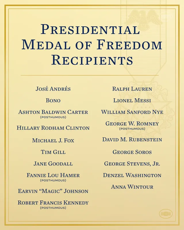 미국 최고의 훈장이라는 대통령 자유 훈장 수상함