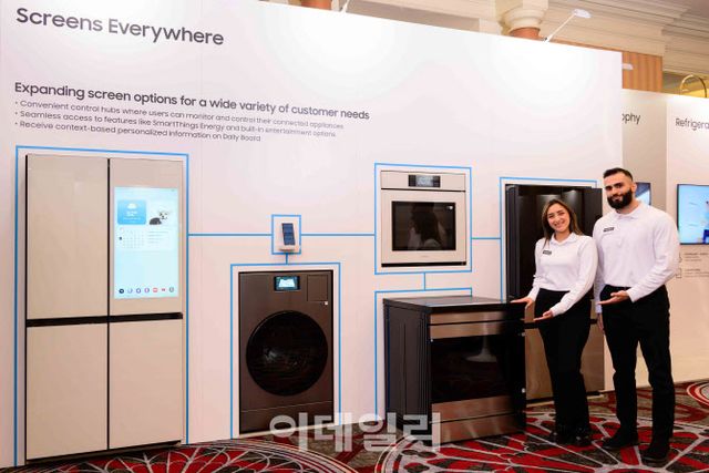 삼성전자는 ‘스크린 에브리웨어’ 비전을 구현하는 다양한 2025년형 스크린 가전 신제품을 선보였다. 32인치 스크린이 탑재된 비스포크 AI 패밀리허브 외에 올해 신제품인 9인치 스크린을 탑재한 비스포크 냉장고, 7인치 스크린을 각각 적용한 비스포크 AI 세탁기와 비스포크 AI 건조기를 소개했다. 지난해 7인치 스크린을 적용한 일체형 세탁건조기 비스포크 AI 콤보를 출시한 데 이어 세탁기와 건조기 개별 제품에도 스크린을 탑재한 것이다.