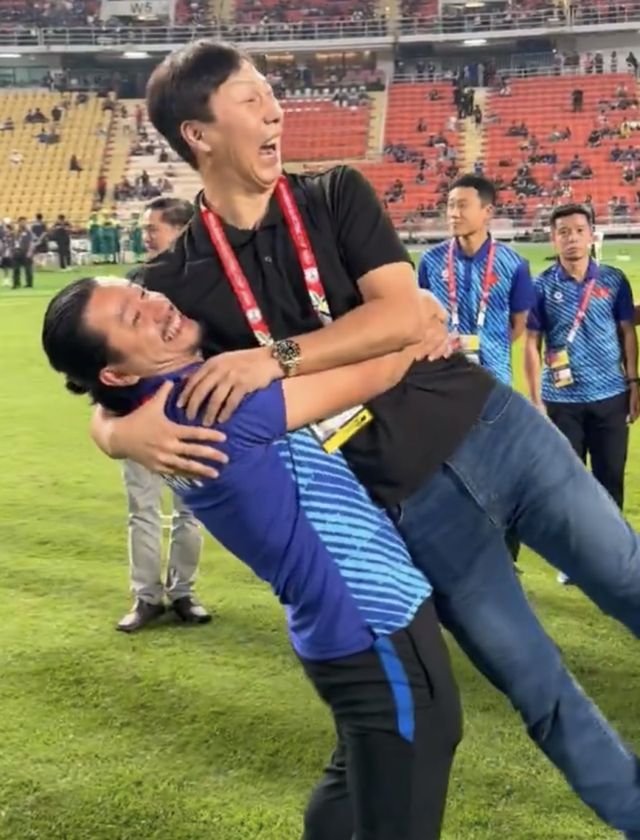 2021년 K리그1 우승 뒤 특유의 ‘힙합 댄스’를 선보인 김상식 감독은 베트남 선수들과 코치진에 둘러싸여 또 한 번 덩실덩실 춤을 췄다. 두 팔을 번쩍 들어 올려 세차게 흔들며 아이처럼 기뻐하기도 했다.