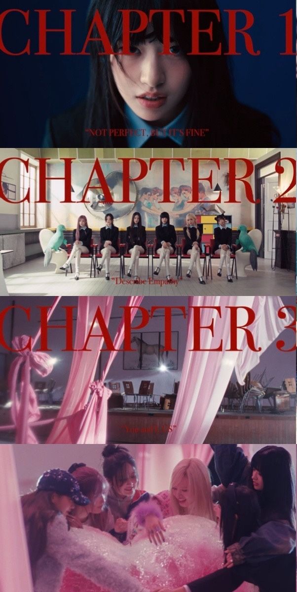 공개된 3분 가량의 영상은 세 개의 챕터로 이루어져 한 편의 시리즈를 연상케 했다. 첫 번째 챕터는 다양한 표정과 감정을 표현하는 멤버들의 모습으로 시작됐다. 다 같이 모여 웃는 모습, 화가 난 모습, 슬픔에 눈물을 흘리는 모습까지 다채로운 감정 연기가 시선을 사로잡았다.