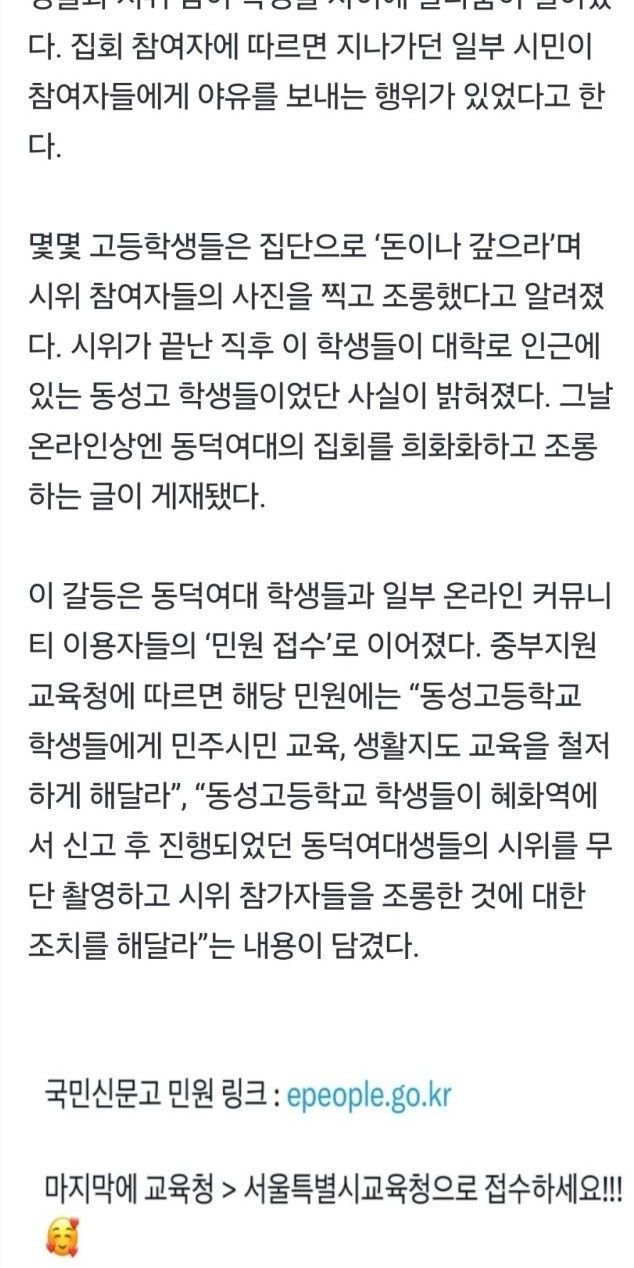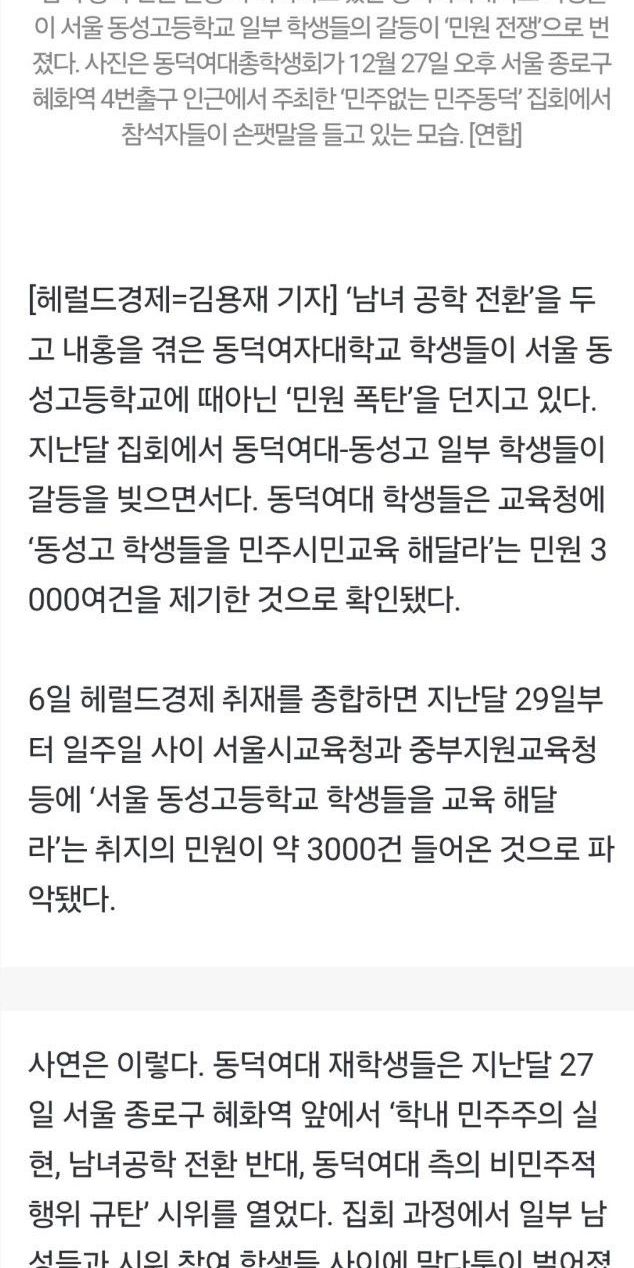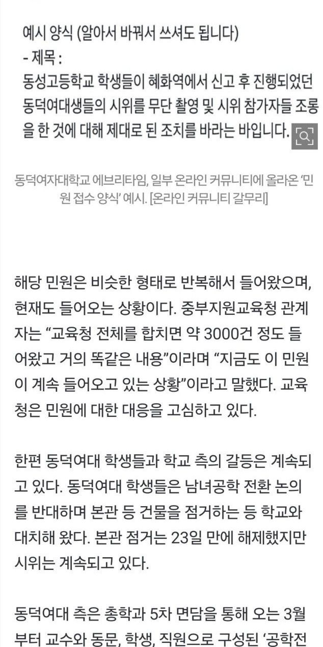 동덕여대, “동성고 학생 지도해 달라” 3000건 민원폭탄