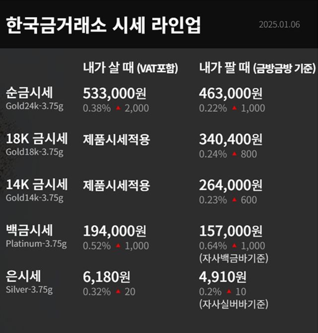 순금(24K) : 매입가 53만 3000원 / 매도가 46만 3000원