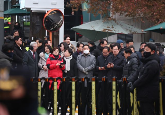 이날 국민의힘에선 당 전체 의원 숫자(108명)의 3분의 1을 넘는 약 40명의 의원이 한남동 대통령 관저를 찾아 수사기관의 체포영장 집행을 막겠다는 의지를 천명하기도 했다. 김기현·나경원·이철규·유상범·이인선·윤상현·강승규 등 친윤계, 영남 지역구, 탄핵 반대파 의원들을 중심으로 모인 37명(오전 9시 기준)의 국민의힘 의원들은 공수처 수사 및 체포영장 발부·집행이 '불법'이라 주장하며 관저에 모여 물리적인 '윤석열 사수'에 나섰다. 조배숙·이철규·강승규·구자근·박성민·이인선·김민전·임종득·조지연 등 9명 의원들은 전날 관저 앞에서 진행된 윤 대통령 탄핵 반대집회에도 직접 참여한 것으로 알려졌다. 대표적 극우 인사인 전광훈 사랑제일교회 목사 등이 주도한 집회다.