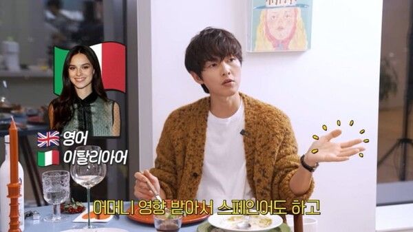 이날 송중기는 '흑백요리사'에서 '나폴리 맛피아'라는 닉네임으로 참가했던 권성준 셰프에게 "와이프가 원래 이탈리아에서 평생 살아왔던 친구라 1년의 반은 이탈리아에 살다 보니까 이탈리아 음식에 빠져있는 편"이라고 팬심을 드러냈다.