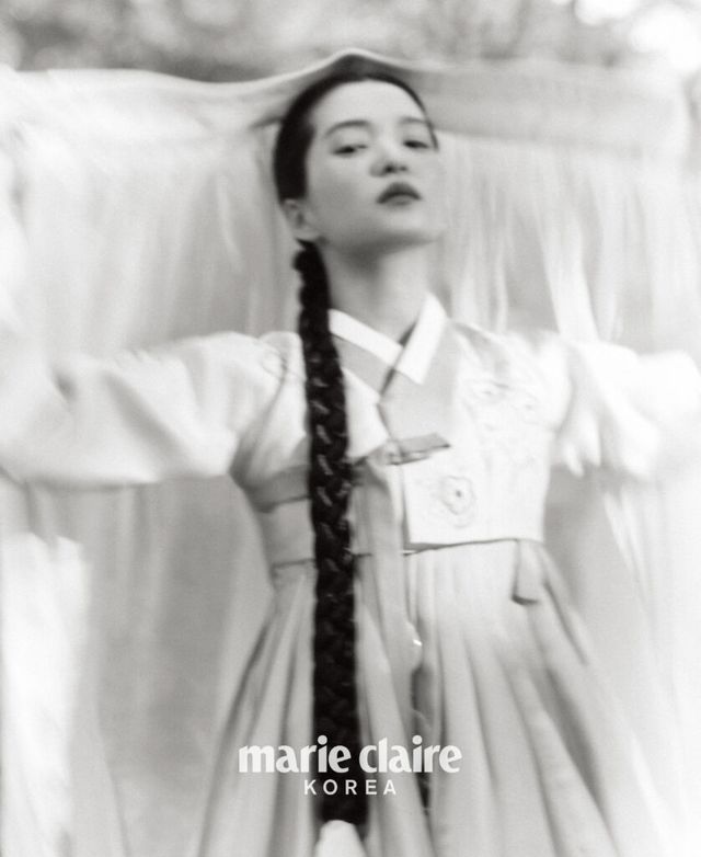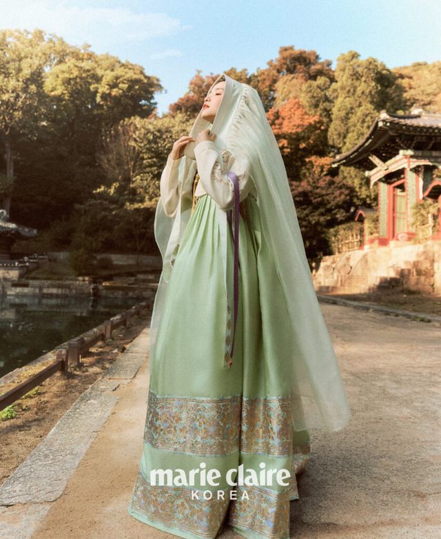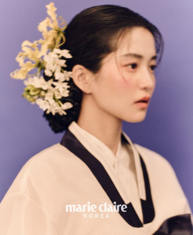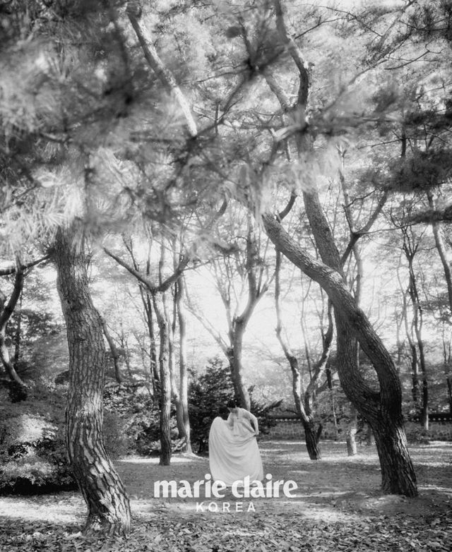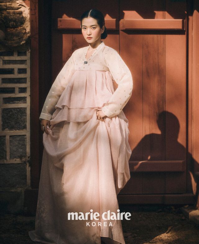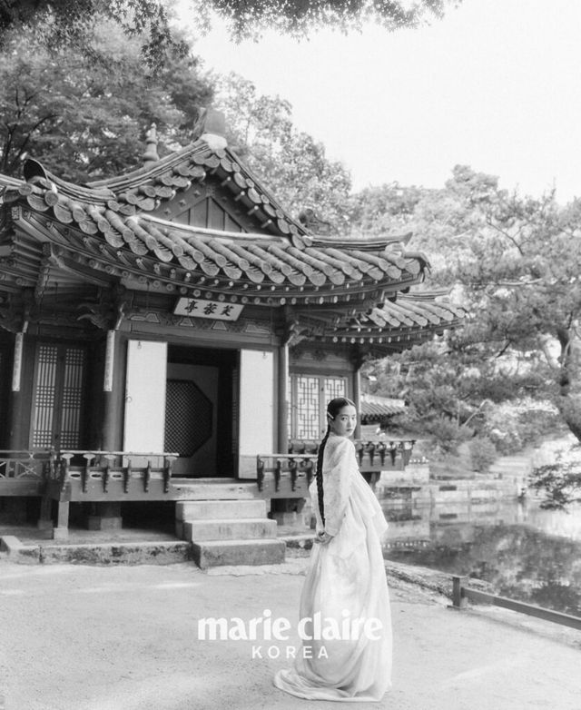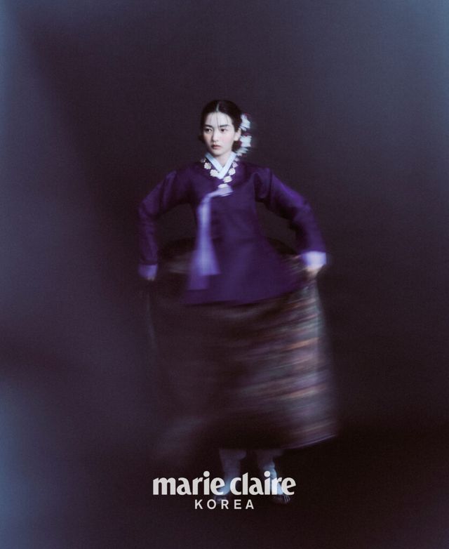 그러고 보니 화보로는 처음이네요. 디자이너 분들과 미팅하는 것도 굉장히 특별한 기회였고요. 한복을 입으면 겉은 한없이 부드럽고 유연하지만, 속은 강인해지는 듯 내면에 힘이 생겨요. 그 내면의 힘이 은은하게 밖으로 넓게 퍼져나간다고 상상하며 화보 촬영을 했어요. 한복을 입고 카메라 앞에 섰을 때 지금 내 눈에 보이는 사람과 사물들을 지나 멀리, 더 멀리까지 어떤 힘이 퍼져간다는 느낌이 들었어요. 그 느낌을 살려야겠다 생각했고요.