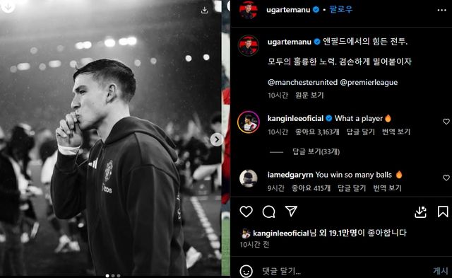 많은 사람들이 이 게시물에 댓글을 달았는데 이강인도 빠지지 않았다. 그는 "엄청난 선수"라며 우가르테를 칭찬했다.