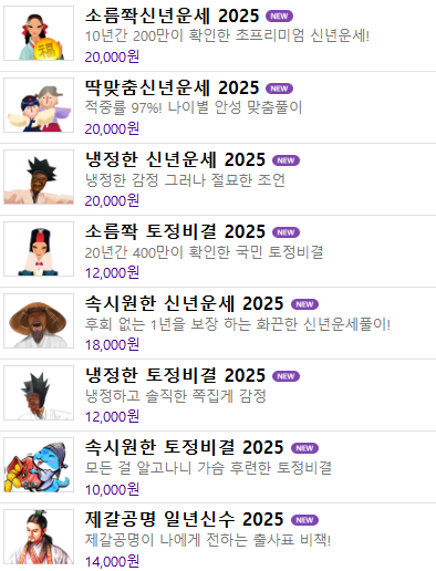 • '소름쫙 신년운세 2025': 나에게 일어날 모든 일을 알 수 있는 상품