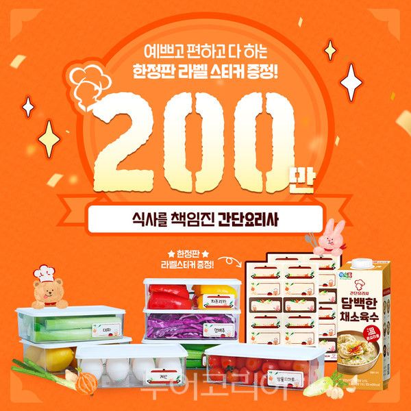 정식품은 이번 판매 성과를 기념해 6일부터 구매 고객을 대상으로 한정판 식재료 관리 스티커를 증정한다. 정식품 네이버 브랜드 스토어, 쿠팡 등 온라인몰에서 간단요리사 담백한 채소육수 구매 시 사랑스러운 디자인의 라벨 스티커를 1주문 당 2매씩 증정한다.