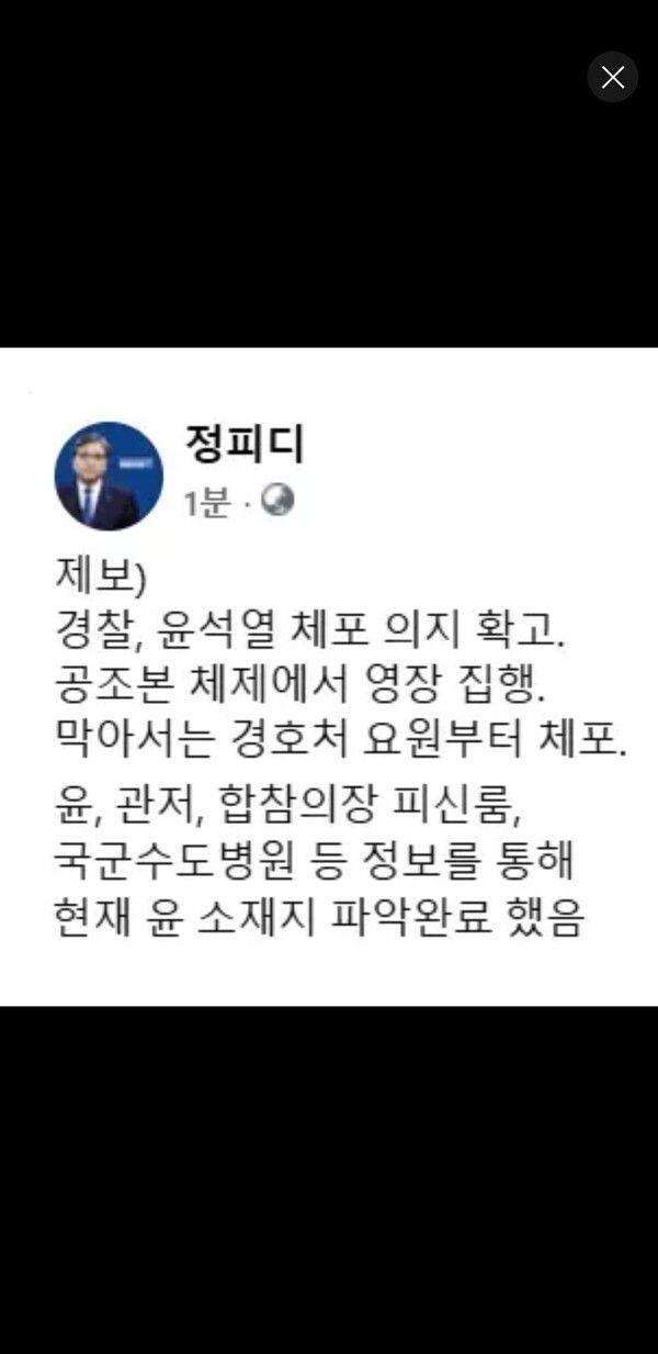 경찰 관계자는 이날 오후 브리핑에서 "공수처와 통화하고 협의를 어느 정도 마쳤다"며 "공조본 체제를 유지하면서 체포영장 집행 문제를 논의 중"이라고 밝혔다.