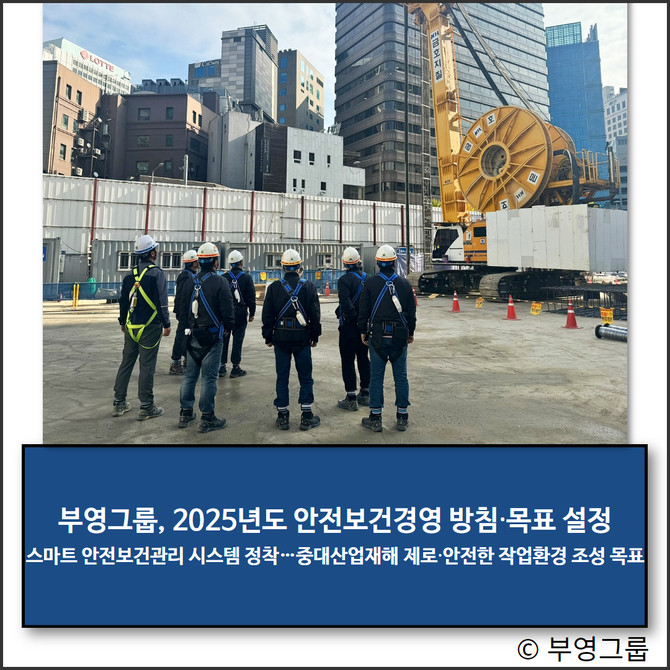 부영그룹이 새해를 맞아 중대재해예방과 안전제일 문화 정착을 위한 '2025년도 안전보건경영방침 및 목표'를 새롭게 수립하며 무재해 사업장 조성에 앞장선다.