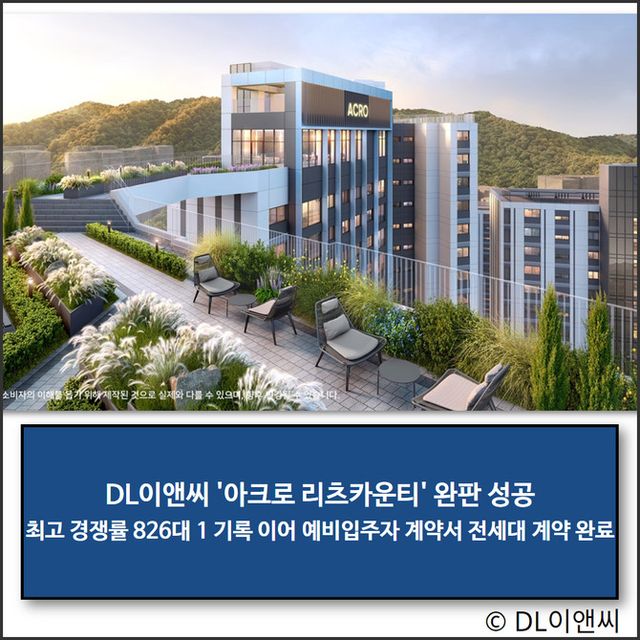 DL이앤씨(375500)는 아크로 리츠카운티의 일반분양 물량 140가구가 정당 계약 및 예비입주자 계약에서 모든 계약을 완료했다고 6일 밝혔다.