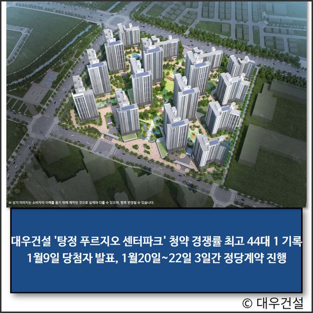 대우건설(047040)이 선보인 '탕정 푸르지오 센터파크'가 청약접수 결과 전 주택형 모집 가구수를 채웠다.