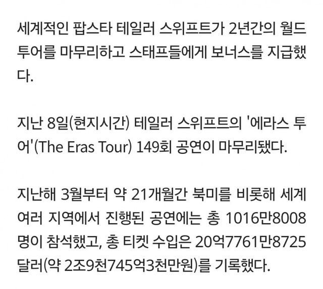 2814억원을 스태프들 보너스로 줬다고 하네요 ㄷㄷ