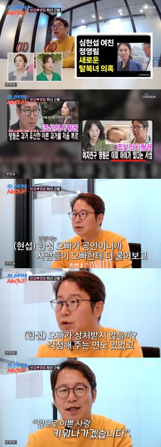 "정영림 씨의 남자친구 심현섭이다. 깜짝 놀랄 정도로 많은 분들의 응원과 격려와 이상한 루머, 괴소문들 다 보고 있는데 이슈라고 생각한다. 그러나 영림이가 상처를 많이 받았다. 저도 이걸 처음 겪는 일이기 때문에 잘 헤쳐나가고 있고 지금 만난 지 10개월째다. 열심히 잘 만나고 있고 앞으로도 예쁜 사랑 키워나가겠다"라며 영상 편지를 띄웠다.