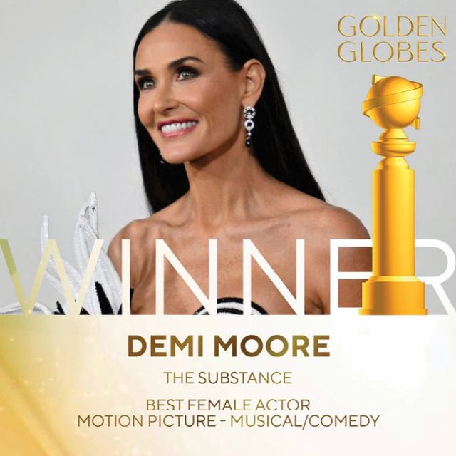 데미 무어는 6일(한국시간) 미국 로스앤젤레스(LA) 더 비버리 힐튼 호텔에서 열린 제82회 골든글로브 시상식에서 ‘서브스턴스’ 엘리자베스 역으로 뮤지컬·코미디 부문 여우주연상을 수상했다. 오스카 레이스의 중요한 바로미터로 여겨지는 골든글로브상을 수상함으로써 데미 무어는 생애 최초 아카데미 연기상 수상에 한 발짝 더 가까워졌다.