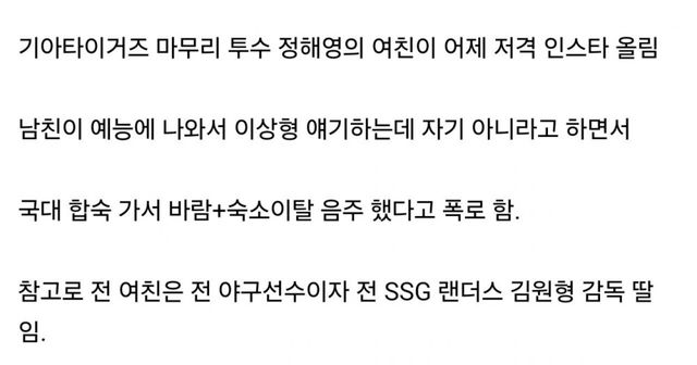 현재 야구판 난리난 양다리 스캔들