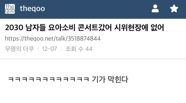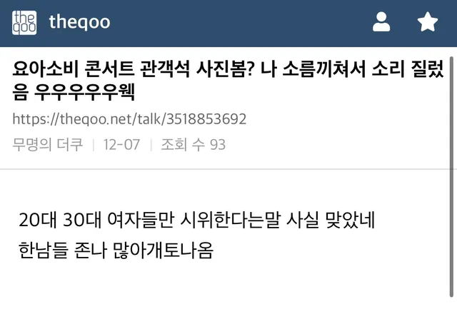 이 시국에 이대남들은 팔자 좋게 콘서트 보러 간다고 불타는 중
