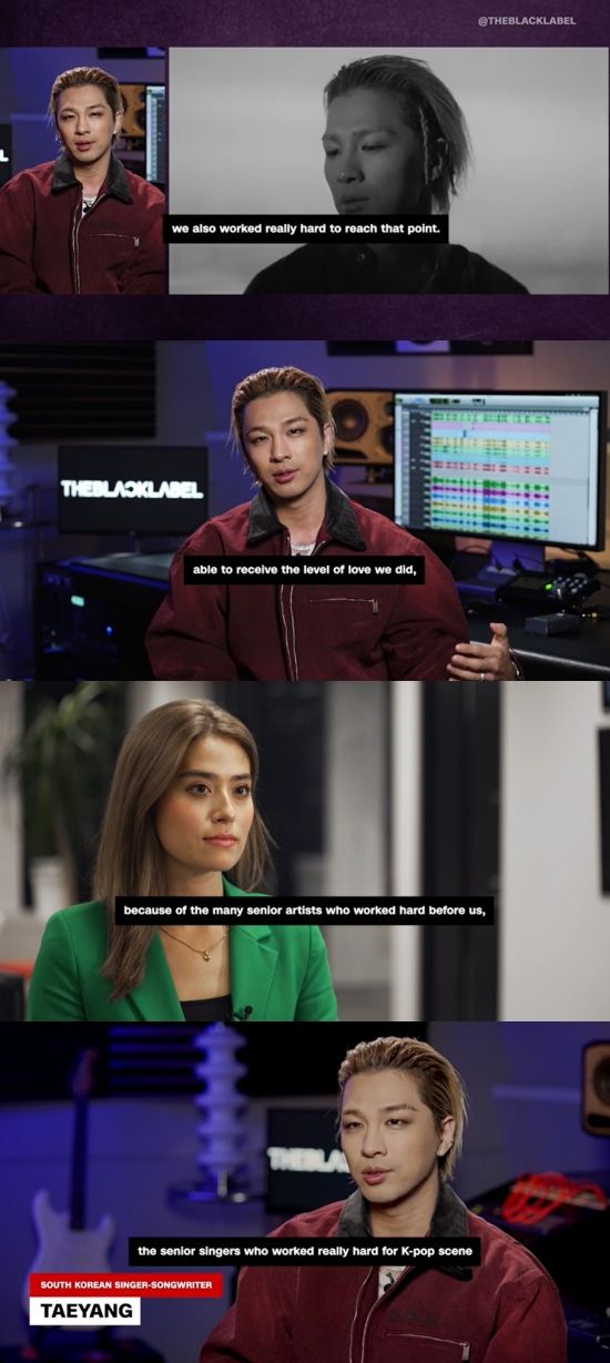 공개된 영상은 태양이 신년을 맞아 CNN 월드와 진행한 인터뷰 영상을 담고 있다. 인터뷰어로 나선 CNN의 하나코 몽고메리는 "당신과 빅뱅은 K팝이 세계적인 현상으로 만드는 데 선구자 역할을 했다. K팝이 전 세계를 강타한 지금의 모습을 보면 어떤 느낌이 드느냐"고 물었다.