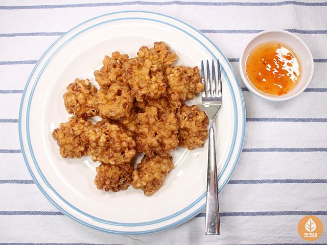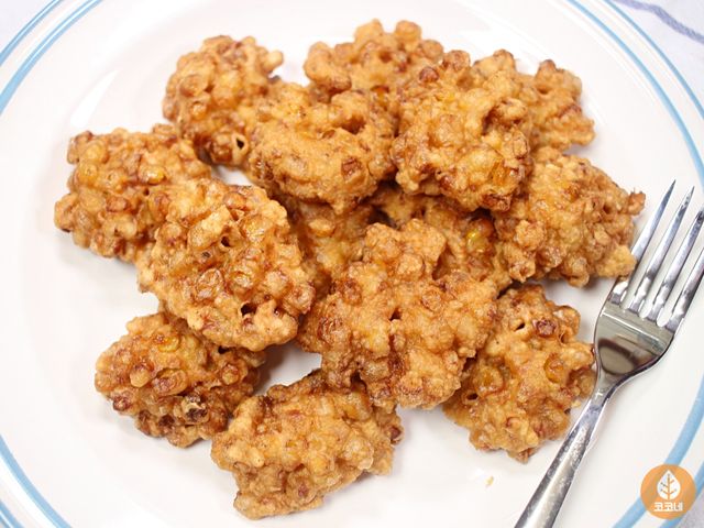 톡톡 터지는 옥수수 알갱이와 바삭한 튀김옷이 어우러져