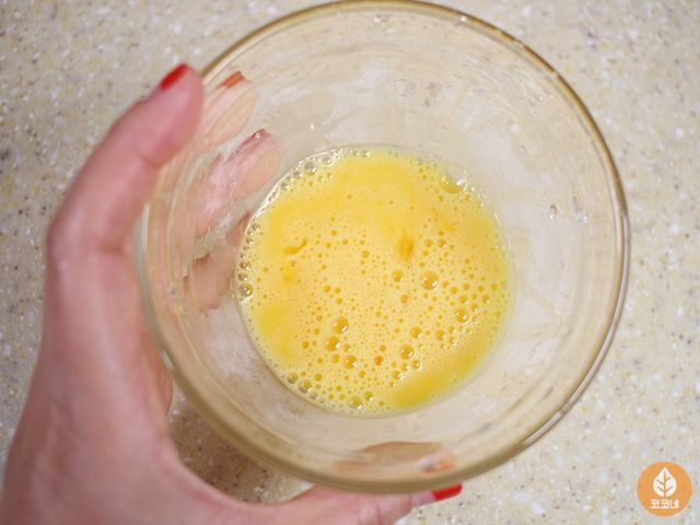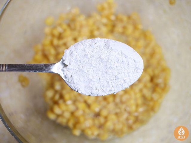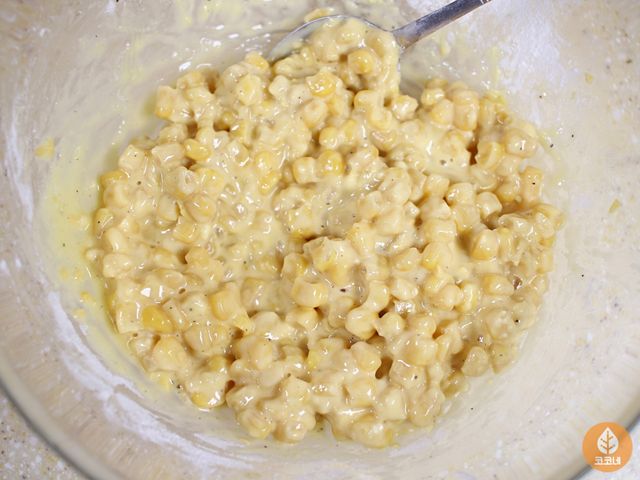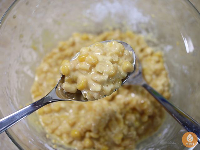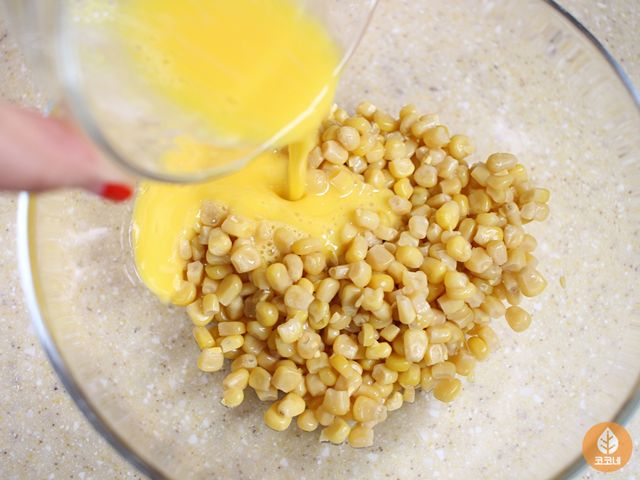 옥수수 알갱이랑 달걀물을 골고루 섞고