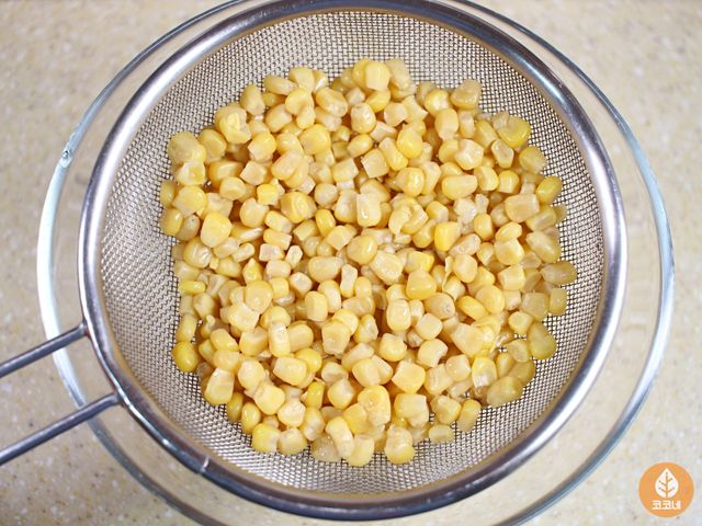 캔옥수수는 흐르는 물로 헹군 뒤 물기를 빼주세요.