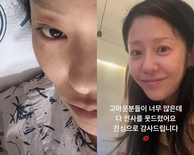 고현정이 입원 당시 모습과 퇴원 후 행복한 미소를 함께 전했다.